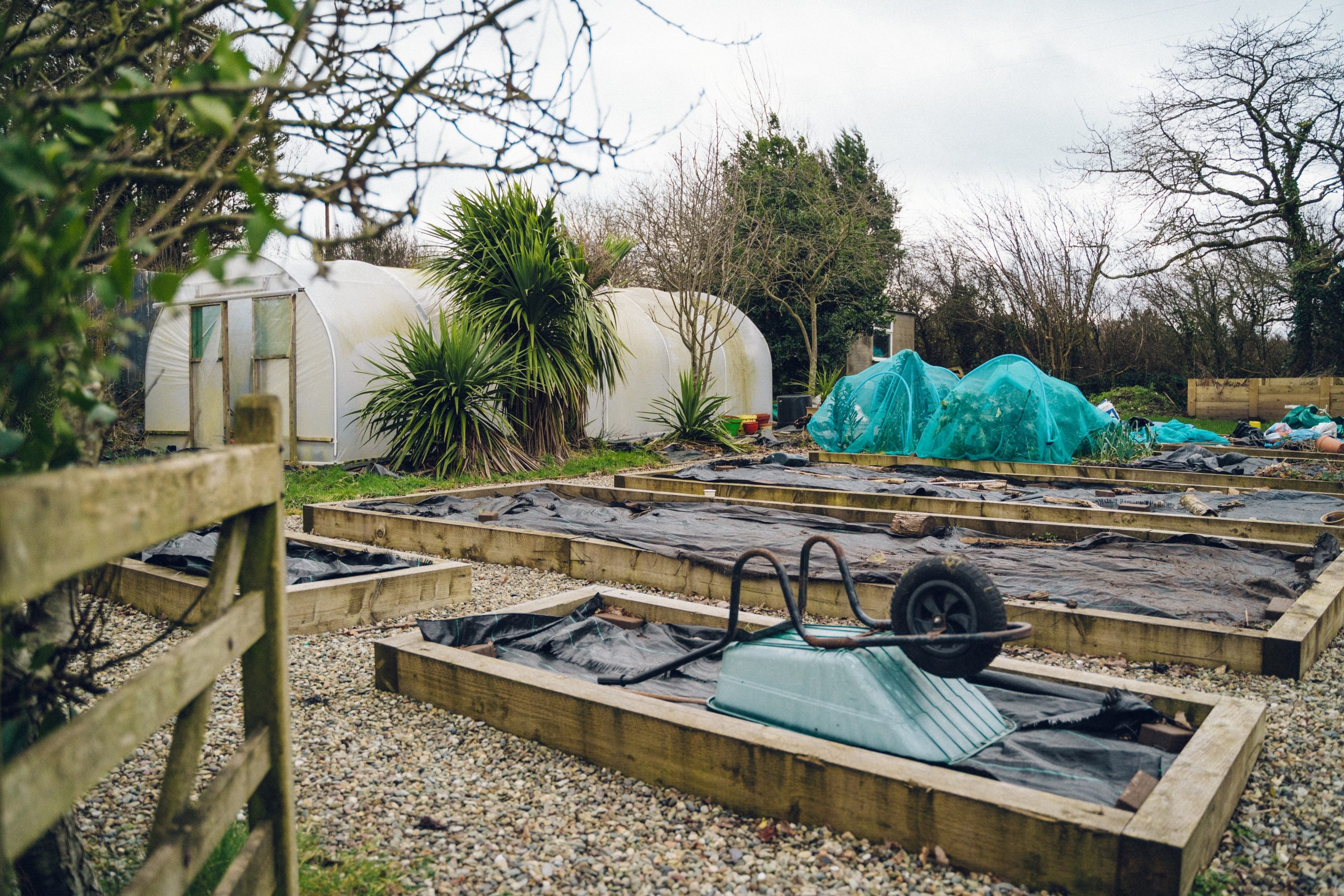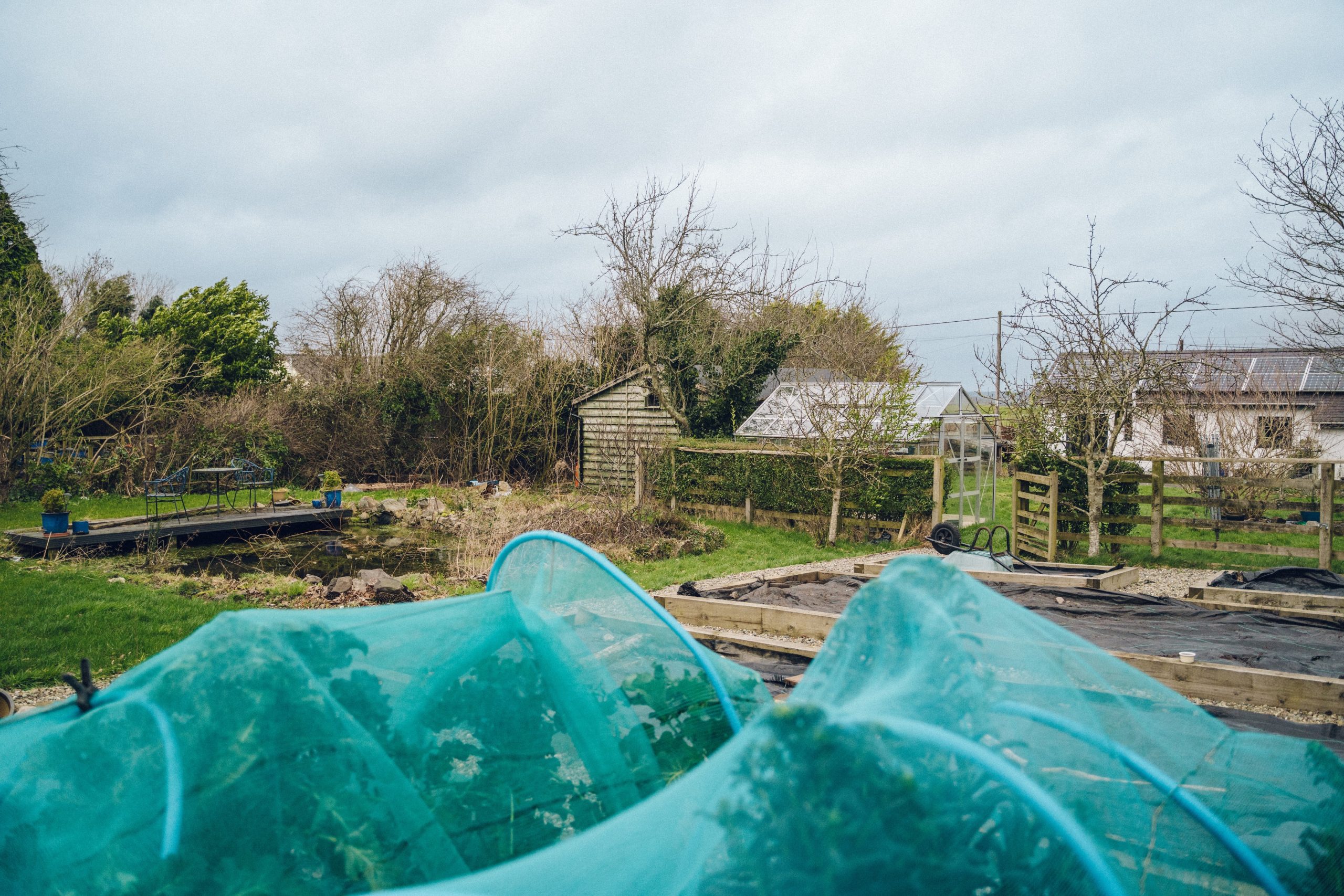 Y tu hwnt, mae’r ardd yn datblygu mewn adrannau - bron fel ‘Tardis’ o bosibiliadau. Ceir ty gwydr, polytwnnel, sied fawr, siediau ychwanegol, storfa goed, cwt ieir a phwll, ynghyd a gwelyau tyfu aeddfed, coed afalau a phlanhigion eraill, popeth yn barod i’w feithrin.