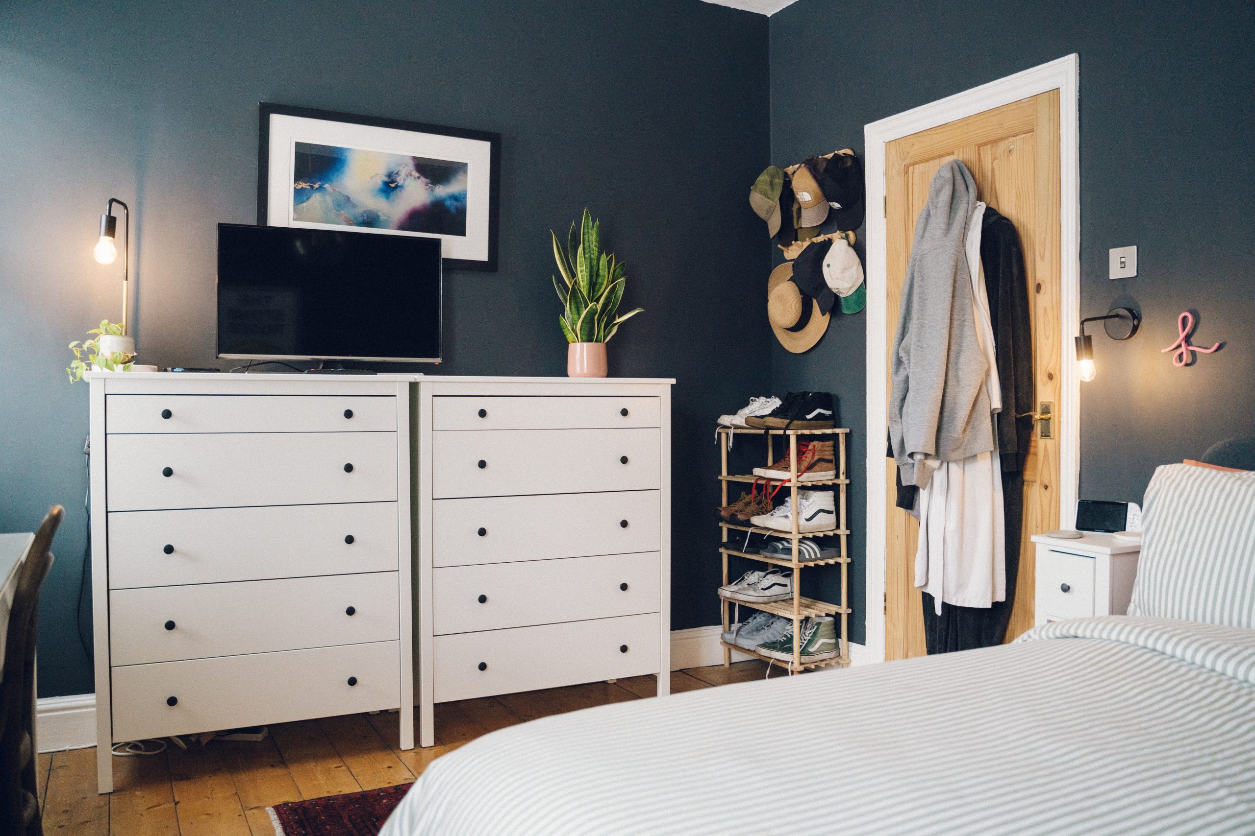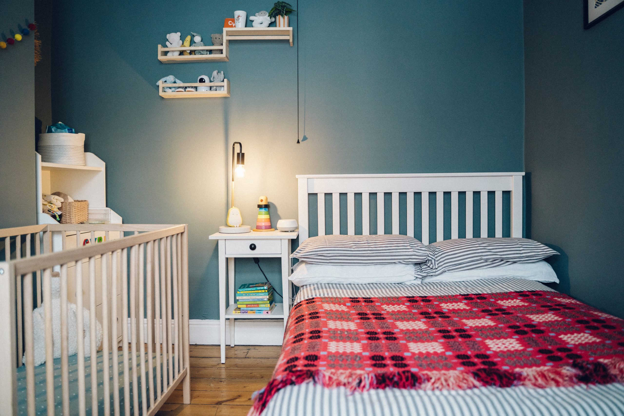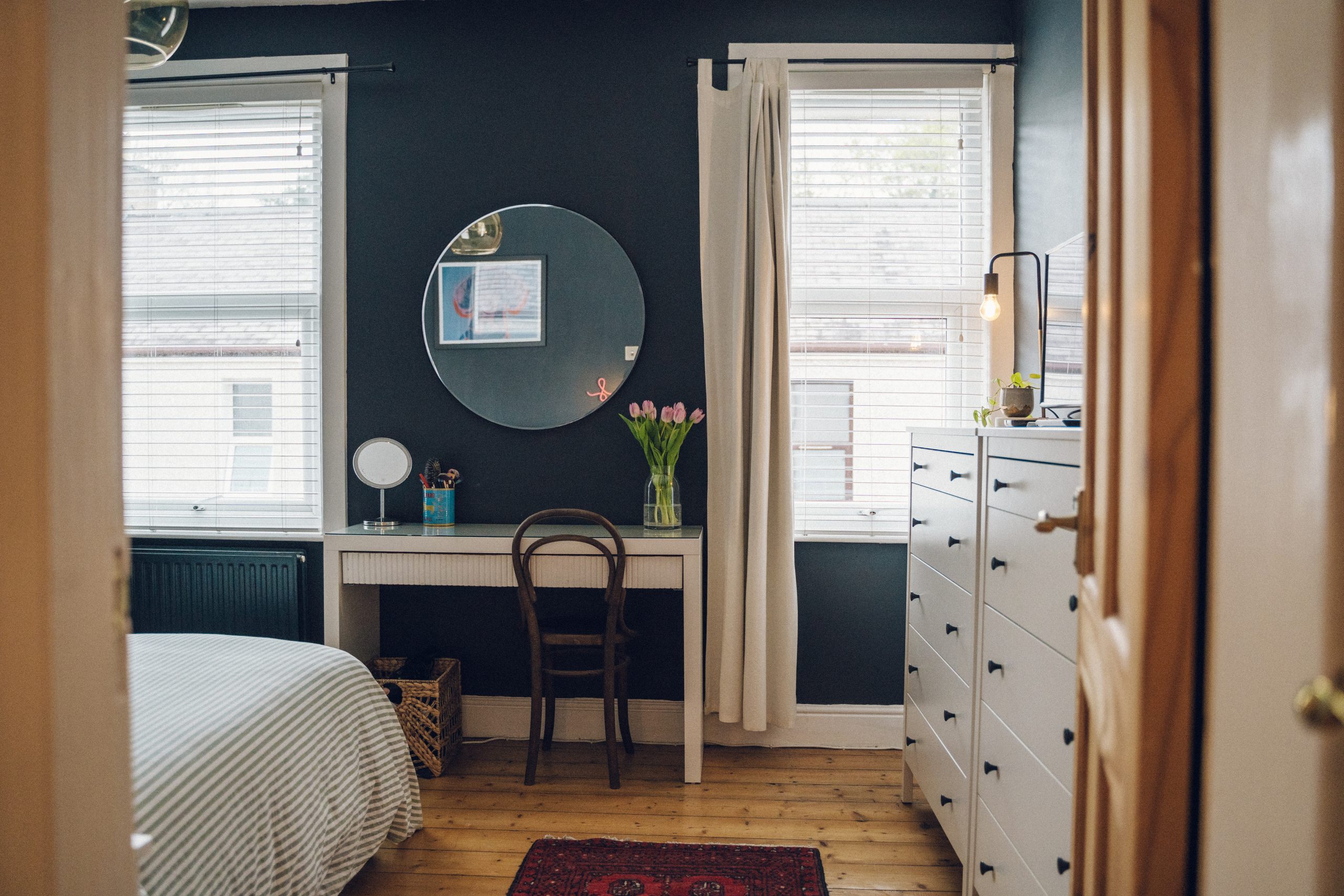 The smaller of the two bedrooms, yet still a great size, currently accommodating a double bed and cot. With beautiful original wooden floors and morning light streaming in, it’s a lovely, characterful bedroom.